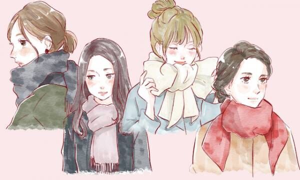 今っぽいマフラーの巻き方 ちょっとの工夫でかわいく イラスト ローリエプレス